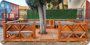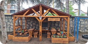 Kaliteli Malzeme: “Zorlu dış mekan koşullarına dayanıklı, sertifikalı ahşap ve doğal taş kullanımı.”